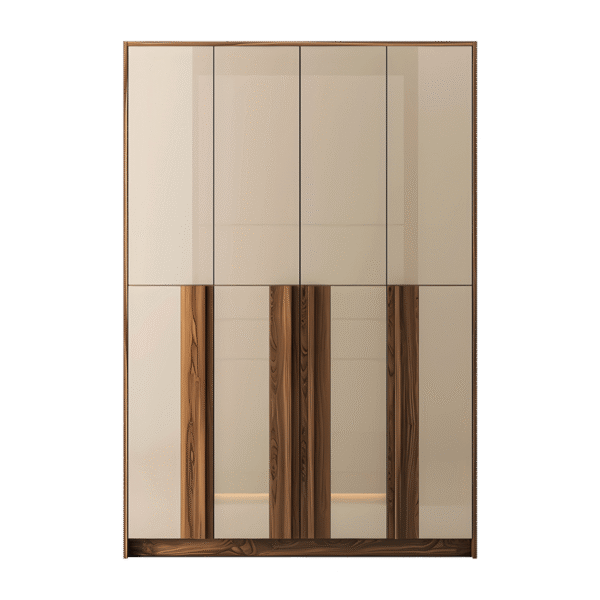 Coordinating Nightstands (Pair): Includes two matching circular nightstands with deep, high-gloss wood finishes and subtle metallic handles, providing a balanced and sophisticated look on either side of the bed.