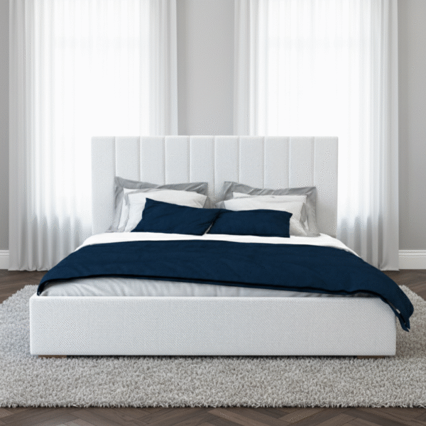 Crisp White Platform Bed with Vertical Channel Tufting