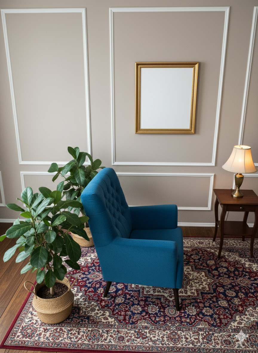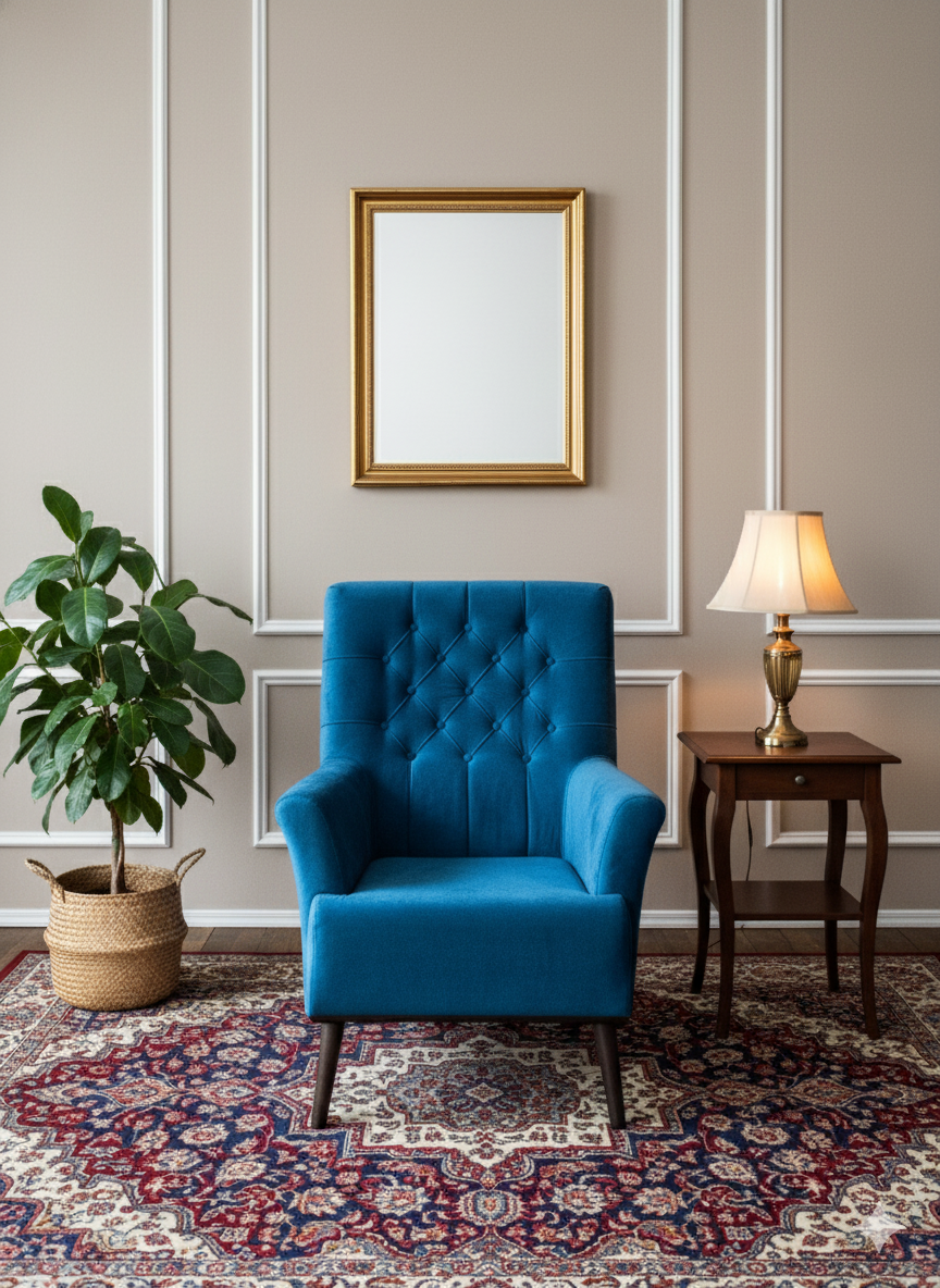 This accent chair is a perfect fusion of Mid-Century Modern simplicity and glamorous texture. Upholstered in a plush, eye-catching royal blue or sapphire velvet, this chair instantly introduces a vibrant pop of color and luxury into any space. Its clean lines and tailored details make it a sophisticated focal point for a living room, bedroom, or entryway.