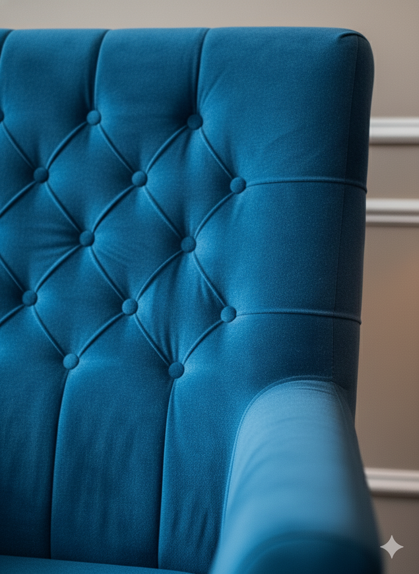 - Vibrant Upholstery: Covered in rich, soft blue velvet, creating a jewel-toned statement piece.