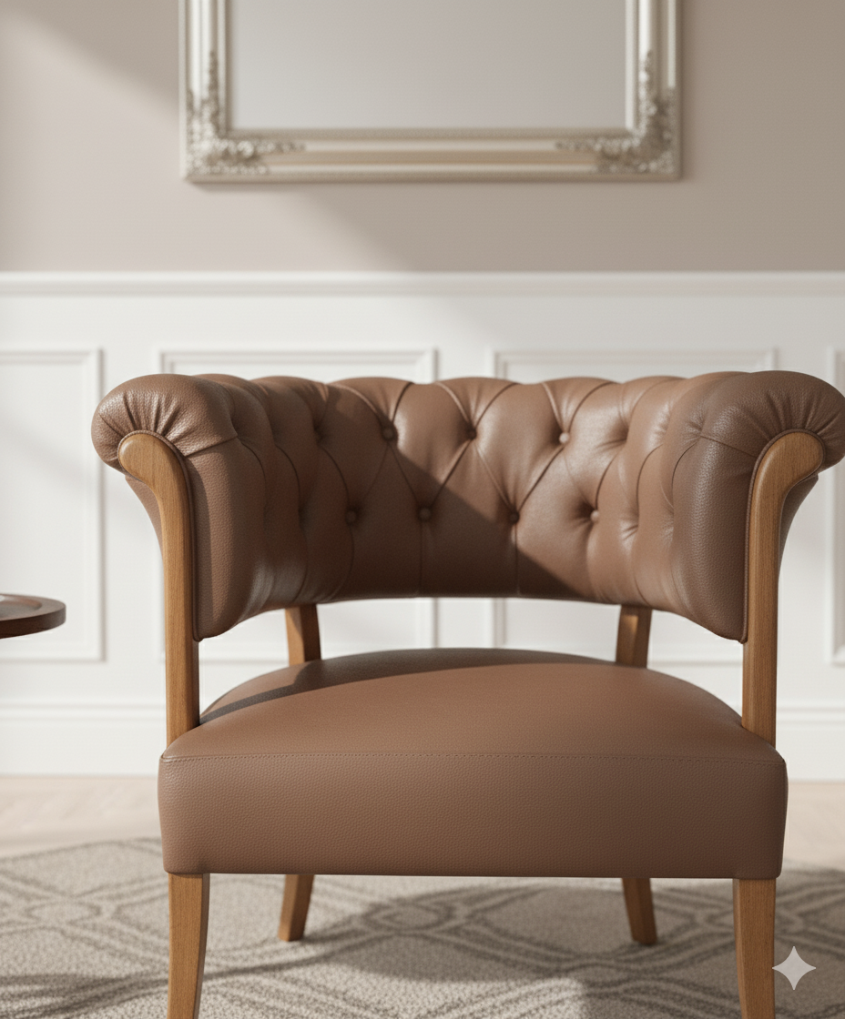 - High-Quality Leather: Upholstered in a rich, warm brown leather (or high-quality faux leather) that is both durable and develops a beautiful patina over time.
