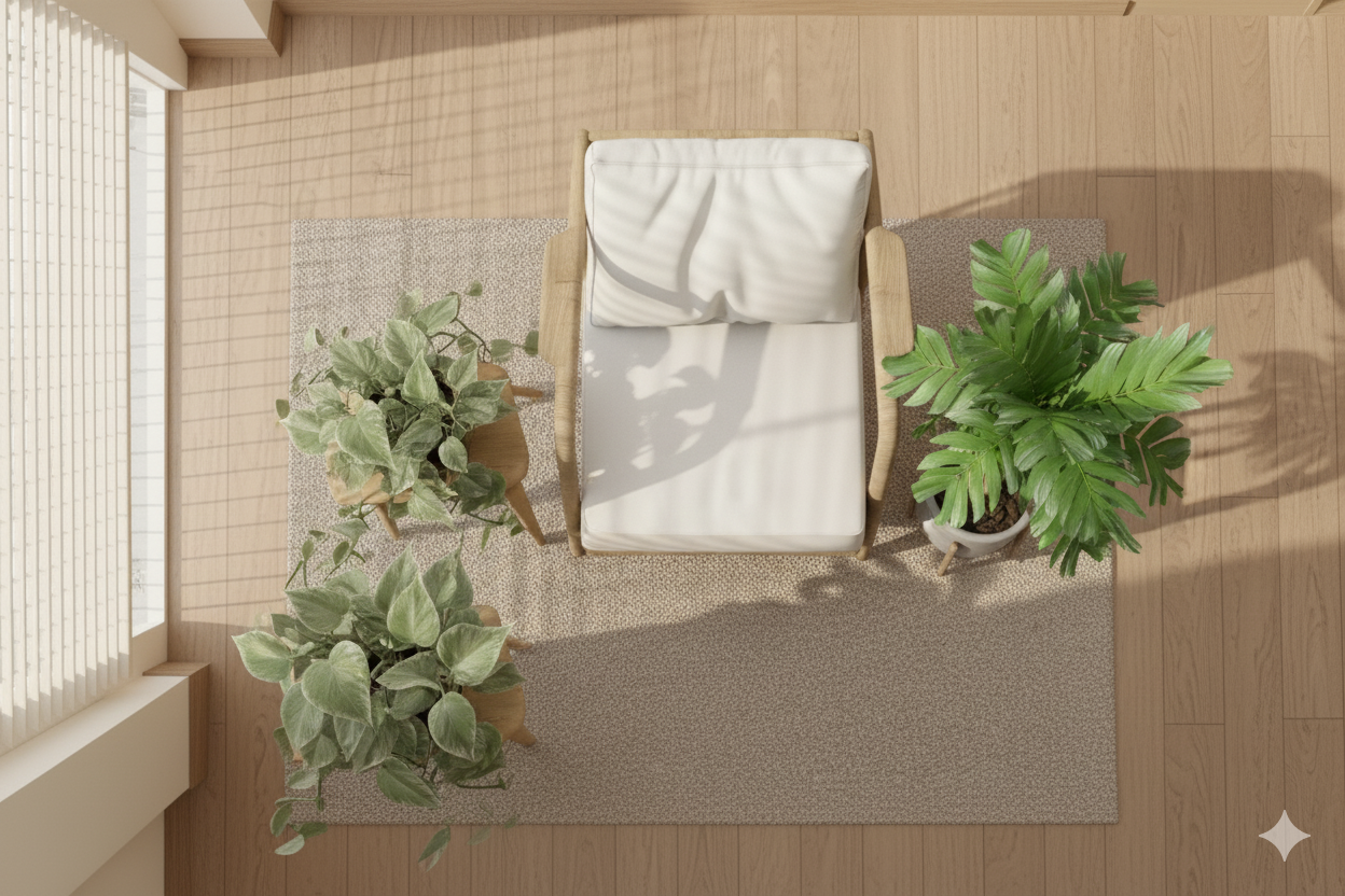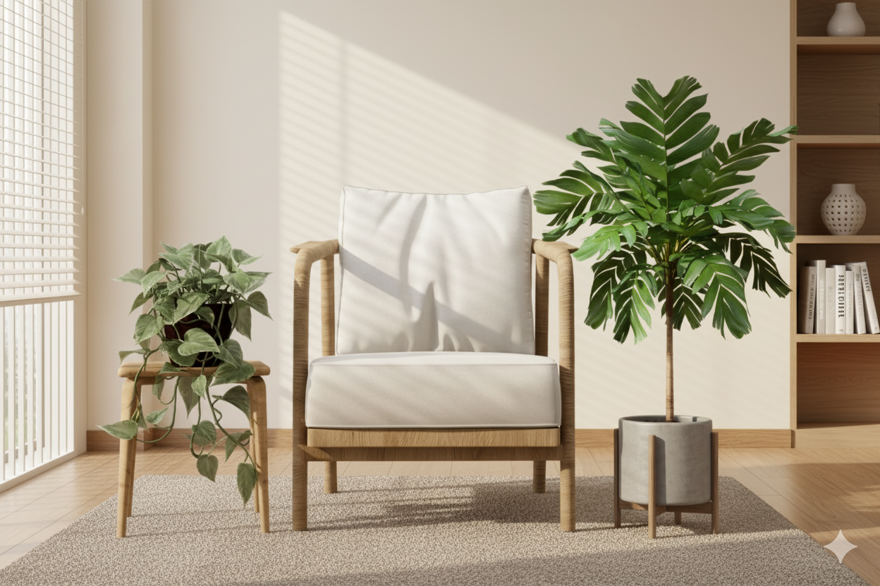 - Open Wood Frame: The light wood frame is exposed and simple, a hallmark of Scandinavian and mid-century modern design.
