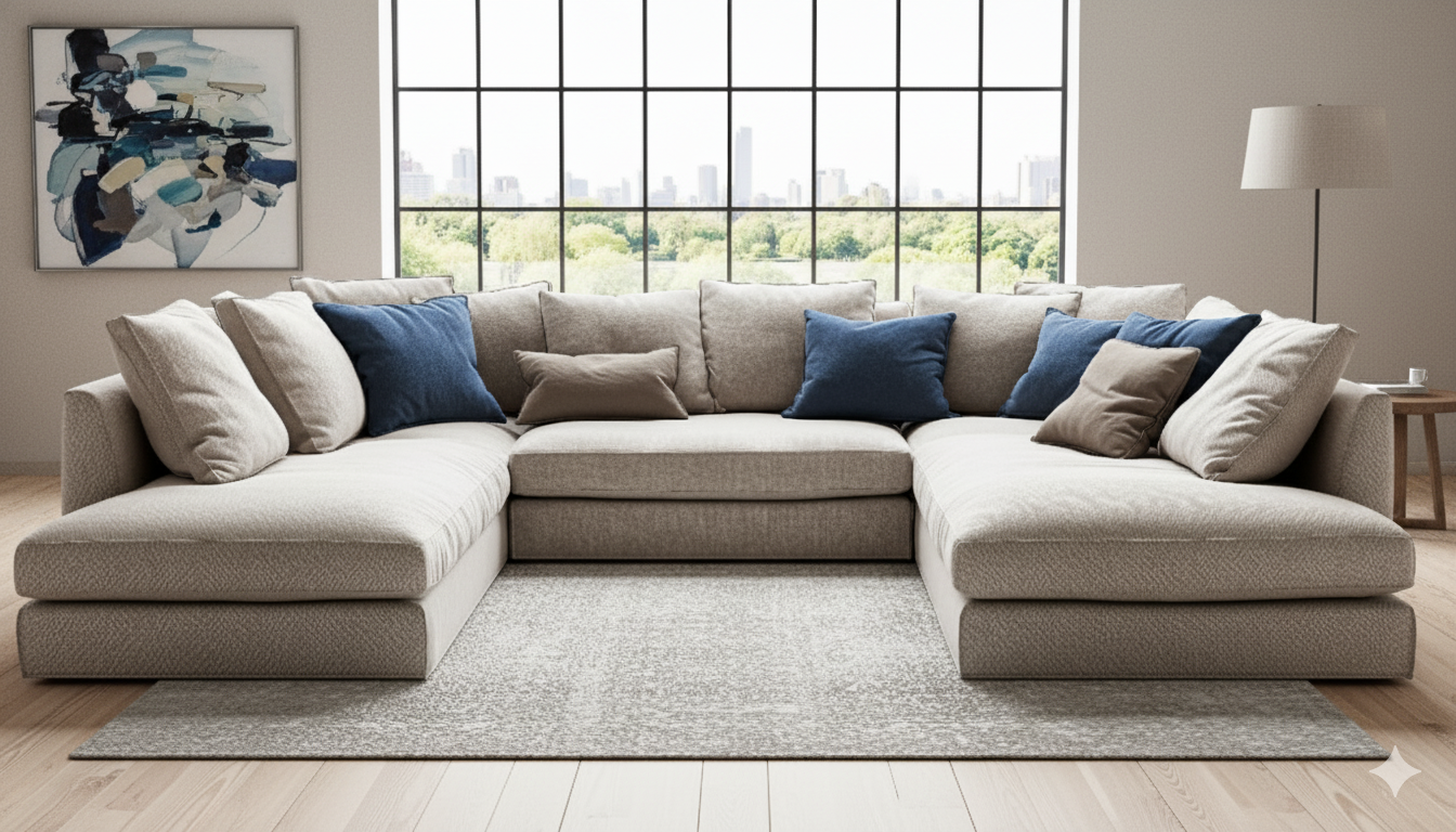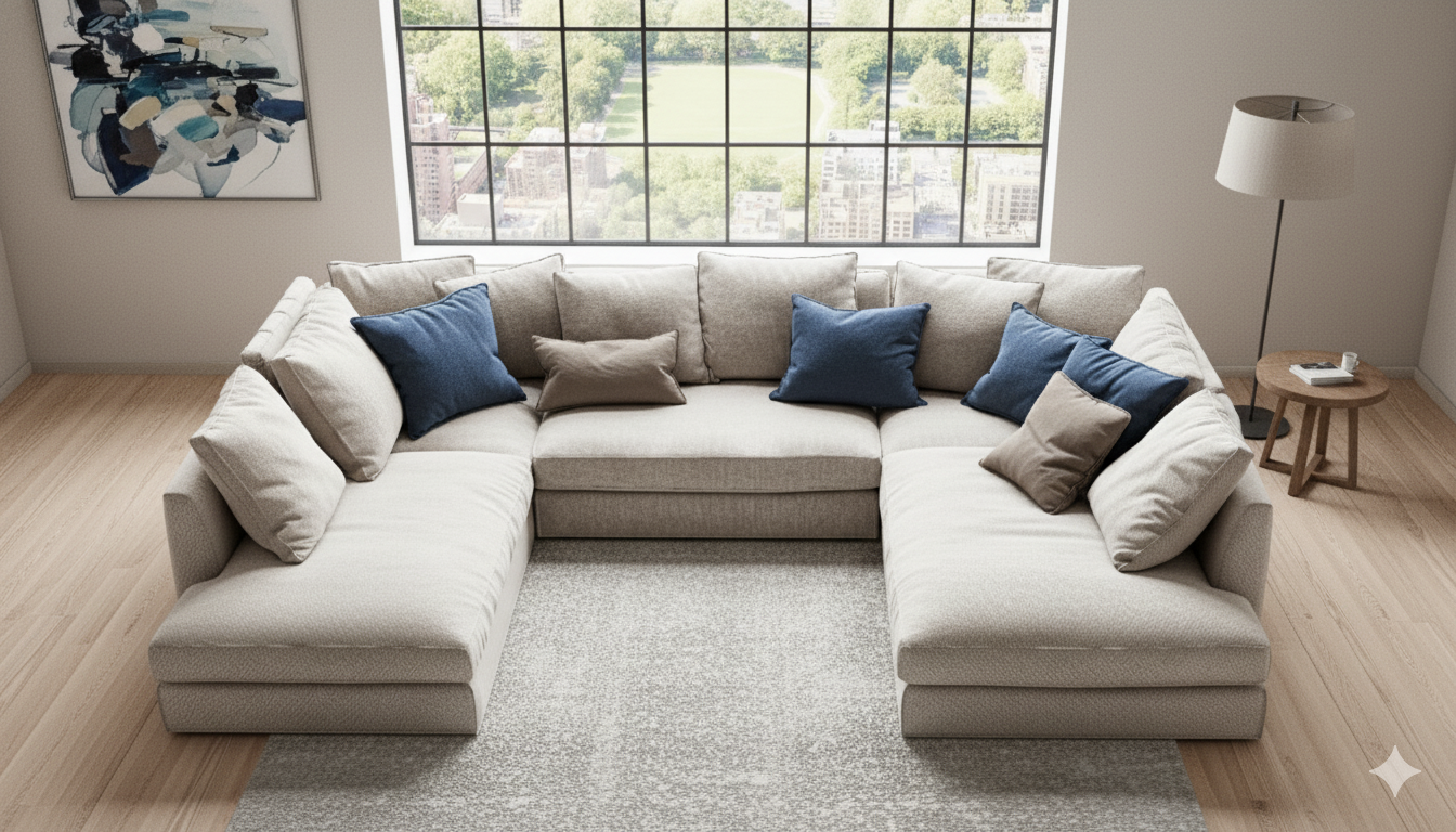 Cloud-Like Comfort: Contemporary Modular U-Shaped Sectional in Light Beige