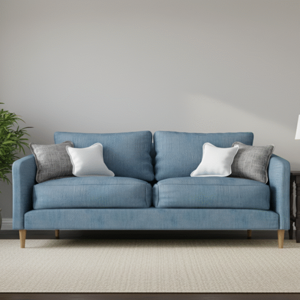 Bring a touch of serene, airy sophistication to your home with the Coastal Breeze Loveseat. Upholstered in a soothing powder blue or light denim-look fabric, this two-seater sofa seamlessly blends Scandinavian simplicity with modern comfort. Its inviting color and clean, slightly curved lines make it the perfect addition to brighten any living space, from a chic city apartment to a relaxed coastal retreat.